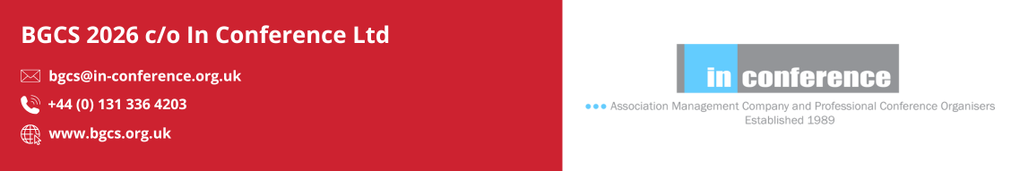 If you have any questions regarding the above or payment problems please contact us on: bgcs@in-conference.org.uk